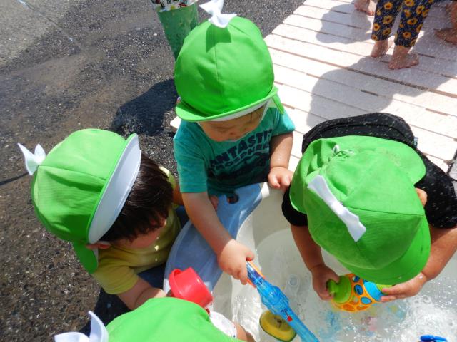 お友達など様々でした。水遊びやこれから行なうプール遊びから沢山の事を経験していってほしいなと思っています(^^♪