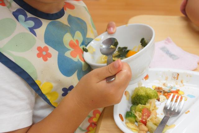 鉛筆持ちや、上手持ちを行ないながら食べていました。