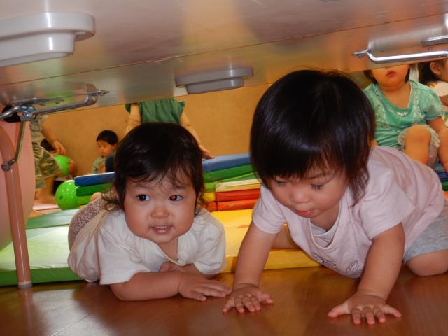 ムシムシした日になりましたね。お部屋でマット遊びをしました。