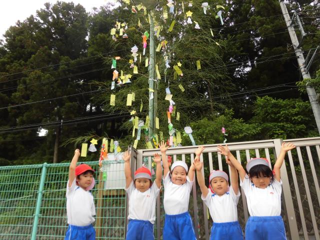 今日は七夕ですね☆彡七夕会では「飾り付けで明るい色を使うことの意味」や、「使う色5色の由来」などの話が園長先生からありました。子ども達も放送の声が聞こえるほうにしっかり体を向けて興味深々でした!(^^)クラスでお願い事を発表したり、七夕の絵を描きました。きりん組のお友だちの素敵な願い事がたくさん聞けて嬉しかったです!「逆上がりできるようになりたいです」とお願いごとを伝えてくれた子も、、、。みんなのお願い事が叶いますように★