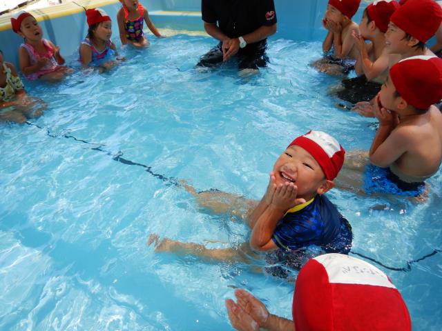 保育者の話を一番に聞くこと、順番を待ちシャワーを浴びることなどお約束を守りながら楽しくプール遊びを行ないました!(^^)!
