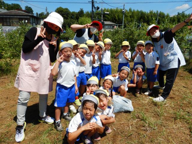 はやく紙コップいっぱいにブルーベリーを取りたい!という気持ちが強く、強い力で木からブルーベリーをとる姿も見られました。一生懸命育ててくれた人がいること、収穫物は大切である。というお話をしました。「とらせてくれてありがとうございます」の挨拶も気持ちがこもった挨拶は相手にも伝わります。