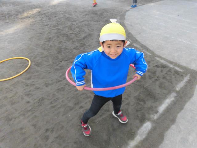 今日は合同保育でりす~ぞう組で過ごしました!園庭に出ると三輪車やボールを出してお友達と一緒に遊んでいました!フラフープではお友達と何回まわせるか対決し100回以上回して熱い戦いをしていましたよ♪松田