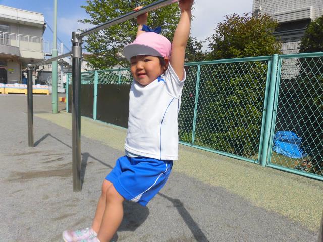 鉄棒ではお友達と、ぶら下がり競争を楽しんだり、