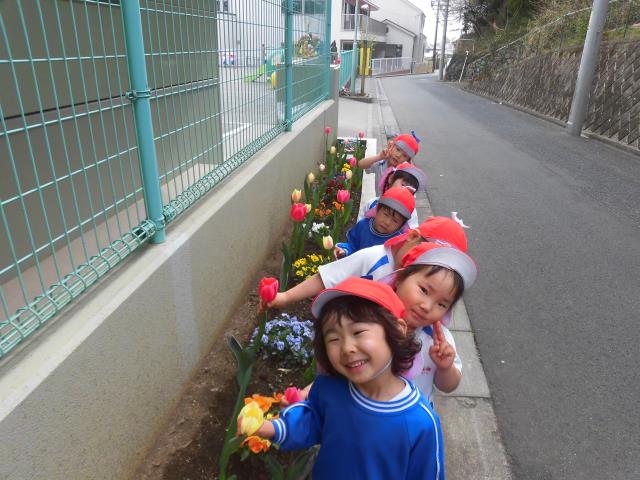 園の花壇には綺麗なお花が植えられており、「きれい!」「かわいいね!」とお花を見て楽しみました(^^♪