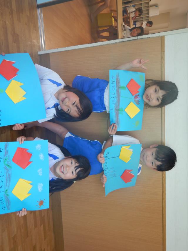 明日は「昭和の日」で保育園はお休みです!朝の会で、子ども達に昭和の日についてお話をしました(^^)