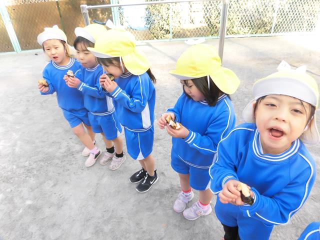 火がとても大きくて「うぁー」と言って驚くお友達やおにぎりを「ありがとう」と言いながら受け取る事が出来ていました(*'ω'*)