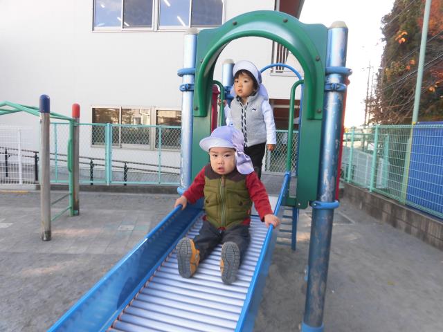 滑り台も押さないように自分たちで考えて登り何回も滑っていました♪