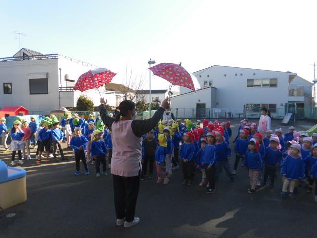 発表会当日は、うさぎ組は衣装を身に付け、体操着を着用でりす~ぞう組は正装でハミングホールにお越しください。マスクを入れる巾着もお持ちください。本日お配りしたマスクを着用してお越しください。