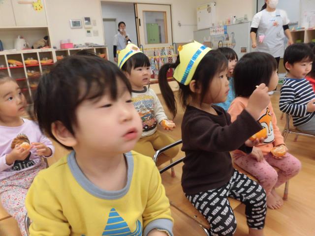 そして、昨日理事長先生からみかんを頂き、みんなで食べました!勤労感謝のプレゼントのお礼で頂いたみかん。おいしい!と嬉しそうでした。