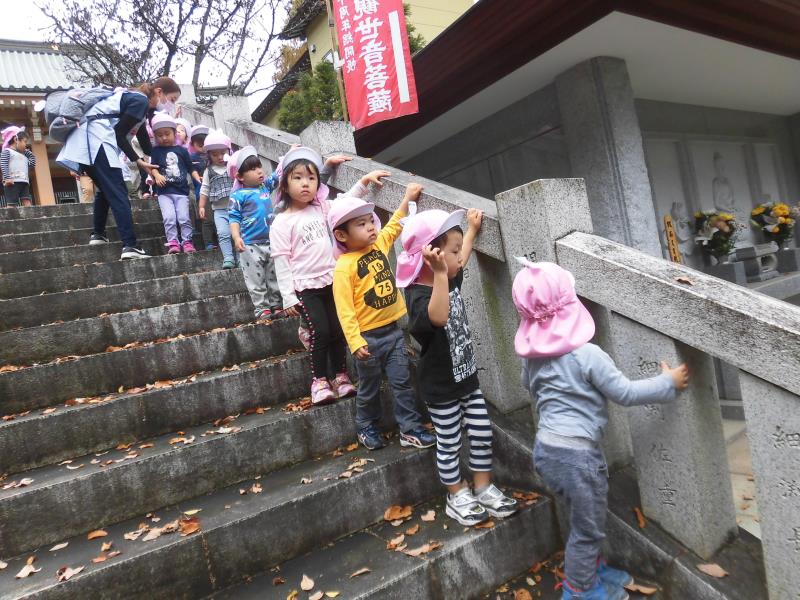 あひる1組はうさぎ組と一緒に円乗院へ、あひる2組は園周辺をお散歩しました!