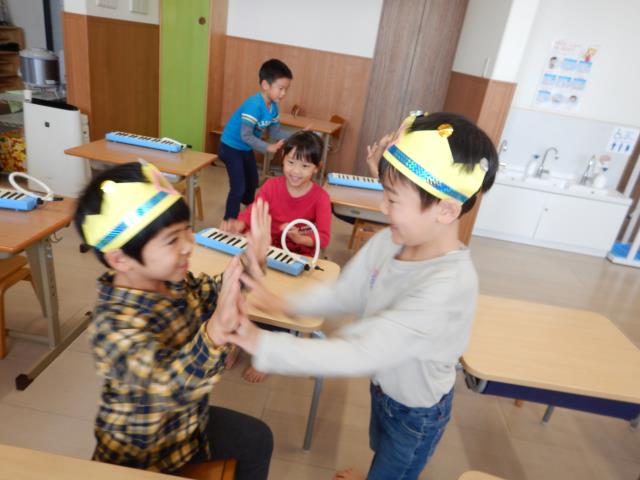 今日はホールで鍵盤ハーモニカと歌を歌いました!