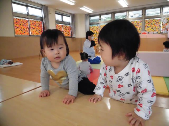 テーブルの下を手や足を使って潜り抜けて、「ばあ」と言っているお友達もいて楽しんで遊んでいました!