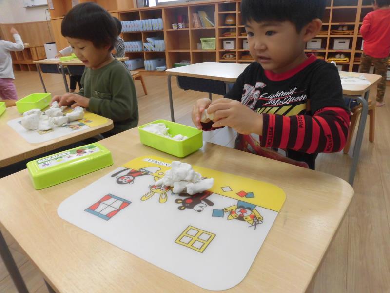 「ヘビや恐竜、アンパンマン!」と言いながら作ったものを見せてくれました(^^)/