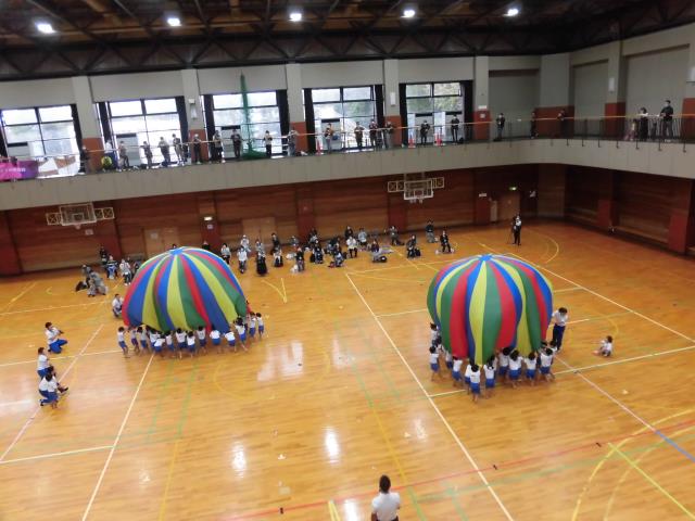 初めて運動会を体育館で行ない、1部ではうさぎ組・りす組のお友達が走ることを楽しんだり踊ることに緊張したりと可愛らしい姿を見せてくれました。2部ではきりん組・ぞう組のお友達がお父さん、お母さんに自分の頑張る姿を伝えようと一生懸命披露する姿、みんなの応援にこたえ今まで以上のパワーを出す姿に大きな成長を感じました。